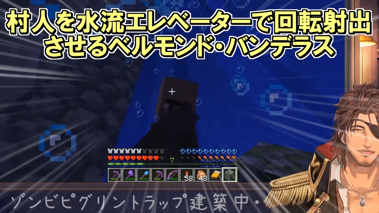 Minecraft 村人を水流エレベーターで回転射出させるベルモンド バンデラス にじさんじ切り抜き ニコニコ動画
